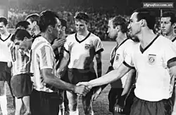 Six Bayern players were also part of the West German side that won the World Cup final of the same year against the Netherlands. In the following season, the team's motivation on the national level was exhausted, but under coach Dettmar Cramer, they still managed to score the big points. In 1975 Leeds United were defeated in the Champions Cup final in Paris when Franz Roth and Gerd Müller secured the defence of the Cup with their late goals. Bayern then also established a new record of sorts: the only Champions Cup winner to date with a negative national league record in the same season. Within 12 months, in Glasgow, Saint-Étienne were beaten by another goal by Roth and Bayern became the third team to win the trophy in three consecutive years.