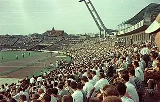 Ferencváros won the 1975–76 season of the Hungarian League.[98] Therefore, Ferencváros could enter the 1976–77 European Cup. Ferencváros beat Jeunesse Esch 5–1 at home on 15 September 1976.[99] On 29 September 1976, Ferencváros also won the return match by 6–2.[100] In the second round, Ferencváros beat Dynamo Dresden 1–0 at home on 20 October 1976.[101] However, on 3 November 1976, Ferencváros were beaten by Dresden 4–0 in Dresden, East Germany which resulted the farewell for the club.[102]