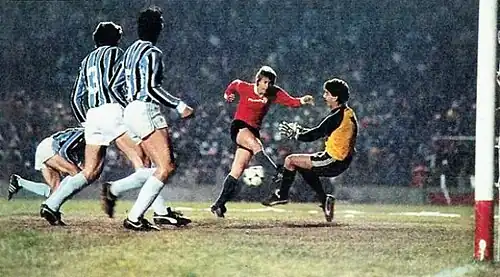With the Libertadores victory, Grêmio qualified for the Club World Cup in Tokyo against Hamburg, which had won the European Cup (predecessor to the UEFA Champions League) by defeating Juventus in the final. Prioritizing the World Cup, Grêmio finished third in the 1983 Campeonato Gaúcho. The historic match took place on December 11, 1983, at the Tokyo Olympic Stadium. After taking the lead with a goal by Renato Portaluppi, the Tricolor conceded an equalizer to the Germans in the final minutes. The match went to extra time, where Portaluppi shone, scoring the winning goal three minutes in. As it was not sudden death, Grêmio held the lead until the end, celebrating the club's greatest title.[11][2] Renato, the match's hero, was named man of the match. Grêmio became the first Rio Grande do Sul team to be recognized as World Champions by FIFA.[2]