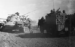 Until 1966 Israel's principal arms supplier was France; but in 1966, following the withdrawal from Algeria, Charles de Gaulle announced France would cease supplying Israel with arms (and refused to refund money paid for 50 warplanes).[44] On 5 February 1966, the US announced that it was taking over the former French and West German obligations, to maintain military "stabilization" in the Middle East. Included in the military hardware would be over 200 M48 tanks. In May of that year the US also agreed to provide A-4 Skyhawk tactical aircraft to Israel.[45][46][47] In 1966 security restrictions placed on Arab-Israelis were eased and efforts made to integrate them into Israeli life.[48]