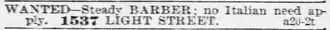 - Cipriano Ferrandini, an immigrant from Corsica and long-time barber/hairdresser at Barnum's Hotel in Baltimore.