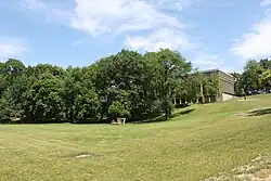 With the opening of the Kent Free Library in 1892, Kent became the first municipality in Ohio to take advantage of a new state law which allowed municipalities with populations under 5,000 to tax residents for the upkeep of a library.[27] In 1903, the library moved to its current location on West Main Street in a building that was financed by a $10,000 USD ($377,960 present-day) gift from Andrew Carnegie. Carnegie donated the money on the condition residents provided a site and $1,000 USD ($37,796 present-day) per year for maintenance. The levy passed overwhelmingly[28] on September 17, 1901 and the site was donated by Marvin Kent. Although additions have been made throughout the years, the original library building still stands today and currently houses the library's genealogy and local history areas. Most recently, all previous additions were demolished and a new, three-story addition was constructed which tripled the previous amount of available space. This new addition opened on September 26, 2006, exactly 103 years after the original library opened.[29]