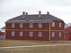 At the same time, Adolf Hoel encouraged the establishment of a hotel. Laura Borgen signed an agreement with Kings Bay and started the North Pole Hotel in one of the former housing units. During 1936 six cruise ships with 4,000 passengers visited the town.[14] Kjøde took over ownership of the hotel from 1937. A/S Nordpolhotellet was incorporated on 22 June 1938 and used four buildings for its hotel operations. The upgraded hotel opened on 3 September 1939, but was closed only days later following the news of the German invasion of Poland. Kings Bay moved its head office from Ålesund to Oslo on 22 June 1939.[39]