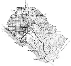 In 1919, the California State Legislature redefined the county's boundary with Los Angeles County to no longer follow Coyote Creek but instead along Public Land Survey System township lines instead.[25]