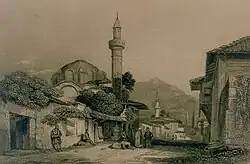 On March 25 the revolutionaries declared the Revolution in the square of Agios Georgios in Patras. Therefore, it was at Patras that the Revolution is held to have officially began on March 25, 1821 in the chapel of Agios Georgios. The Orthodox metropolitan of Patras and member of the Filiki Etairia Germanos, who was absent from Patras, returned to the town and blessed the freedom warriors. On the next day the leaders of the Revolution in Achaia sent a document to the foreign consulates explaining the reasons of the Revolution. However, some three hundred Turkish forces, mainly cavalry, under the command of Yussuf Pasha, heading from Ioannina to Euboea changed their direction and landed in Patras on April 3. The reinforcements joined the Turks of the castle, ransacked and destroyed the town. The consuls of the foreign powers who had been supportive of the revolt, namely those of Sweden, Prussia and Russia and the French consul Pouqueville[9] who had given refuge to Greek revolutionaries, evacuated the town. The English consul Green[10] who had kept a neutral stance refusing to accept Greeks in his consulate, and the French consul Pouqueville, in their written accounts describe the events and the extent of destruction as horrific. The irregular and unequipped revolutionary mob could not risk serious resistance. A possible exception was Panagiotis Karatzas, a local shoe-maker, who along with his men thwarted Turkish attacks on nearby settlements. Finally, the Turks, confined to the citadel, held out until being stormed by the French troops in 1828.[11]