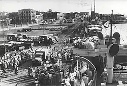 The city benefited from its role as the main export port for the agricultural produce of the Peloponnese.[13] It was the main centre for the organisation of production of raisin, offering warehouse, banking and insurance services. However, this early era of prosperity was short lived; the completion of the Corinth Canal in 1893 challenged the predominance of its port. Besides, in 1894 raisin export prices in the international markets began to plummet, due to overproduction and international circumstances, which triggered a prolonged crisis with deep financial, political and social repercussions, known as the Great raisin crisis.[14] Trade with western Europe, mainly Britain, France and Italy, did much to shape the city's early identity as a significant port and cosmopolitan urban centre in early 20th century Greece.