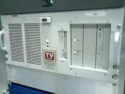 The Atari-based EPG Jr. units were encased in blue rack enclosures containing custom-made outboard electronics, such as the Zephyrus Electronics Ltd. UV-D-2 demodulator board, which delivered data decoded from the WGN data stream to the Atari's 13 pin SIO port (the EPG Jr. software's EPROM was interfaced to the Atari's ROM cartridge port).