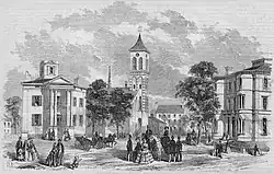 Portland's period of greatest cosmopolitan prominence was in the first four decades of the nineteenth century, when the city was "a rival, and not a satellite of either Boston or New York."[18] In that period, Henry Wadsworth Longfellow got his start as a young poet and John Neal held a central position in leading American literature toward its great renaissance,[19][20] having founded Maine's first literary periodical, The Yankee, in 1828.[21] Other notable literary or artistic figures who got their start or were at their prime in that period include Grenville Mellen, Nathaniel Parker Willis, Seba Smith, Elizabeth Oakes Smith, Benjamin Paul Akers, Charles Codman, Franklin Simmons, John Rollin Tilton, and Harrison Bird Brown.