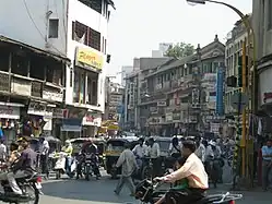 For most of the British era, Pune remained a poor cousin of Mumbai when it came to industrialization. There were, however, a few industrial concerns active at the turn of the 20th century, such as a paper mill, metal forge works, and a cotton mill. An ammunition factory was set up in Khadki in 1869.[51] Printing contributed significantly to the city's economy, due to the presence of large number of educational establishments in the city. To a major extent, manufacturing was a small-scale business. Cotton and silk weaving were major industries that grew in the 19th century. The same was true of brass and copperware.[52] The latter actually developed after the advent of railways made importation of sheet metal easier.[7][53] Other small industries included jewelry, beedi-making, leatherworks, and food processing. Towards the end of the British era, moviemaking had become a significant business, with eminent studios like the Prabhat Film Company located in the city.[54] In the early years of the British rule, an open-air vegetable market used to be held outside the Shaniwar Wada. This shifted to an indoor place built by the Poona Municipality, which was inaugurated in 1886. The market was named after the then Governor of Bombay, Lord Reay, and served as retail and wholesale market in addition to being the municipal office. There was also an older market-district called Tulshi Baug, close to the vegetable market that sold a variety of household items.[55]