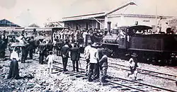 As of 1874, the train already circulated between the capital and São Leopoldo, starting the modernization of the modes of transport in Rio Grande do Sul.[3] The year 1875 marked the arrival of the first waves of Italian immigrants, in a new official colonization project, to be settled in the Sierra Geral, north of the area occupied by the Germans. Anticipating the Italian occupation of the area, the Kaingang Indians who inhabited it were subjected to a new genocide by the so-called "bugreiros", gunmen hired especially to "make room" for the immigrants.[19]