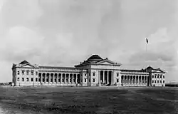 The board of trustees for San Diego Normal School was established by Budd and first met on June 3, 1897.[2] They appointed Samuel T. Black, who had previously served as the California state superintendent of public instruction, as president of the new school by unanimous decision on October 1, 1898.[2] On January 21, 1898, the San Diego firm Hebbard and Gill was selected to design the new school building. The architect Irving Gill, who developed the building in a Beaux-Arts style, was responsible for the design. The ground was broken for construction on August 1, the cornerstone of the building was laid on December 10, and the building was dedicated on May 1, 1899.[5][6] During the building's construction, the first classes were held at the Hill Block on the southwest corner of 6th and F street in downtown San Diego beginning on November 1, 1898.[5][7] The classes moved to the Normal School in May 1899, even as construction continued.[5] 135 students (90% of whom were women), were enrolled by the end of the first year; enrollment grew to 400 by 1910.[5]