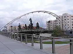 On July 10, 2005, a new trolley station opened on the SDSU campus, after construction began in 1999. The station connected students and faculty with other areas in San Diego county and helped to combat the low availability of parking around campus. The $103 million station was just one of the university's several construction projects that occurred in the 2000s.[85] Starting in the late 1990s, a $500 million College Community Redevelopment Project led to the development of the $8.5 million Piedra del Sol Apartments, the $14.3 million Fraternity Row, and future developments of a $15 million Sorority Row, a $150 million Paseo retail, office, and apartment project, as well as a $125 million research and office park.[86] In 2003, a pedestrian bridge opened, connecting several of the dorms to the main campus.[87] In the same year, the campus's most technologically advanced and largest classroom (capable of holding 500 students) was completed.[88] Through 2008 and 2009, the campus began work on constructing a new alumni center, expanding Aztec Center, and modifying Storm Hall and Nasitir Hall to add more office and classroom space.[89]