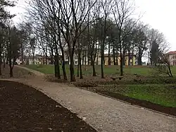 A popular legend has it that in those days an underground tunnel connected San Giorgio to the castle of Legnano, and that through this tunnel Emperor Frederick I Barbarossa managed to escape and save himself after defeat in battle.[41] In the 20th century, during some excavations, sections of a very ancient underground tunnel were actually found. The first one, not far from San Giorgio su Legnano, was explored by one of the workers who unearthed it. The worker was dissuaded from exploration after traveling five or six meters because of a gust of wind that blew out the candle. A second section towards Legnano was discovered and immediately obstructed by the city administration for safety reasons.[42] In addition, during some excavations carried out in 2014 at Legnano Castle, the entrance to another secret tunnel was identified.[43]