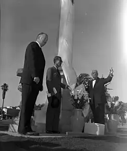 Bandleader Lawrence Welk built the Champagne Towers apartment building and the adjoining 300-foot-tall (91 m) Lawrence Welk Plaza in 1969. The plaza is now known by its address, 100 Wilshire, and it is still the tallest building in the city.
