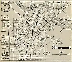 Shreve Town was originally contained within the boundaries of a section of land sold to the company by the indigenous Caddo Indians in the year of 1835, during the period of Indian Removal.[1] In 1838, Caddo Parish was created from the large Natchitoches Parish and Shreve Town was designated as the parish seat. Shreveport remains the parish seat of Caddo Parish today. On March 20, 1839, the town was incorporated as "Shreveport".[1]