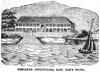 - ^ "Wesleyan Institution, King Tom's Point". The Wesleyan Juvenile Offering: A Miscellany of Missionary Information for Young Persons. X. Wesleyan Missionary Society: 57. May 1853. Retrieved 29 February 2016.