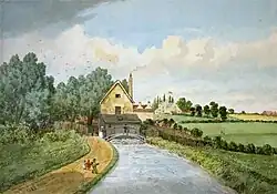 Until the mid-19th century, in this part of Hornsey parish, there were no houses between Crouch End and Archway Road to the west and only the huge Harringay House between Crouch End and Green Lanes. To the south, Stapleton Hall stood alone at Stroud Green, near to recently enclosed common land, and Hornsey Wood House (in what is now the park of Finsbury Park). Several cottages were in Wood Lane, near the present day Seven Sisters Road. A path led south-west to a bridge over the New River. Here, facing Blackstock Road, had stood since before 1804 the old Eel-Pie house,[12] later (by 1847) the Highbury Sluice House tavern, with riverside gardens and the sluice-house itself immediately to the south. Other than those, and houses in 'South Hornsey detached' (now the area of Brownswood Road, south of Finsbury Park), there was nothing else south of the so-called 'Northern Hog's Back', a ridge of land that runs roughly west south-west to east north-east from Highgate to the present-day Harringay (West) station, the highest part of Stroud Green that borders Crouch End.