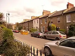 In 1407 this once empty southeastern corner of Hornsey parish was called Strode, which is formed from the Old English 'stōd' and means 'marshy ground covered with brushwood'. It is recorded as Stowde Grene in 1546, the 'grene' suffix is Middle English and means 'village green'.[3] Stroud Green brook flowed from Islington across the southern tip of the area.[4]