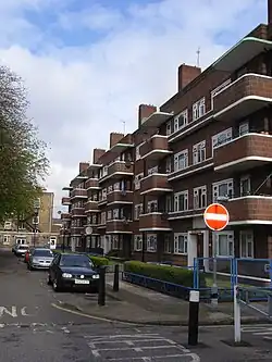 While strictly speaking not properly part of Stroud Green, Womersely House, close by the St Peter-in-Chains catholic church, has already been noted as home to the Turner family, prominent local landowners in the late 19th century, who had previously occupied Stapleton Hall. By the early 20th century however it was a hostel for single working women.[47] It occupied a plot of land bordered by Elm Grove and Womersley Road, and had been demolished by 1947 as can be seen on various RAF aerial survey photos on the Historic England website.[29] The site is currently (March 2008) being re-developed.