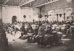 In 1884 the ironworks was modernized and enlarged;[68] in 1885 Alessandro Centurini of Genoa began construction of a woolen and jute mill;[69] in 1890 Antonio Bosco of Turin built a factory for the production of agricultural implements;[70] in 1896 the 'Italian Society of Calcium Carbide, Acetylene and Other Gases' was established, which operated not only factories for the production of calcium carbide but also hydroelectric power plants;[71] in 1883 the Terni-Sulmona railway was inaugurated.[72] Terni was the fourth Italian city, in order of time, to have public lighting by electricity.