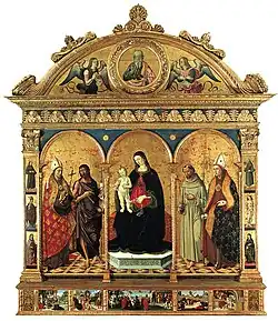 At the beginning of the 15th century, it fell under the seigniory of Andrea Tomacelli, one of the brothers of Pope Boniface IX, who, as podestà of Terni, vainly attempted to make it a stronghold of resistance against the expansionist aims of the Visconti.[32] Between 1408 and 1415 it hosted the allied troops of Ladislaus I of Naples, who supported it in its operations against rival Spoleto. In 1417 it was subject to the lordship of Braccio da Montone,[33] but in 1421 mercenaries in the pay of Pope Martin V brought it back under papal power.[34] The occupation in 1434 by Francesco Sforza's troops was only a sporadic episode in the context of the war for supremacy between Florence and Milan.[35]