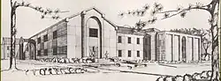 In 1954, the new Gymnasium and Physical Education building opened followed in 1955 by a new dining hall (named Palms Dining Center in 1981). Both structures were implemented according to the school's 1941 development plan. Both the gymnasium and the dining hall were designed by the schools long time design partner, the Edwards and Sayward firm's successor, Logan & Williams.