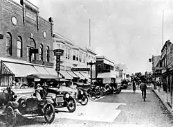 On November 5, 1894, residents met at the "Calaboose", which served as the first jail and police station. The building formerly stood at Clematis Street and Poinsettia, now Dixie Highway. The 78 people there voted on a motion to incorporate, with 77 in favor and 1 against. They also decided to name the municipality "West Palm Beach", originally a town.[17] This made West Palm Beach the first incorporated municipality in the county and in Southeast Florida.[18] On the following day, 78 people also met to vote on the new town officers. Voters elected John S. Earman as the first mayor, while Henry J. Burkhardt, E. H. Dimick, J. M. Garland, H. T. Grant, J. F. Lamond, and George Zapf became the town's first aldermen. Eli Sims and W. L. Tolbert were chosen to be town clerk and town marshal, respectively.[19] Later in November 1894, the Flagler Alerts, an all-volunteer fire department, was established as the first fire department in the city.[15]