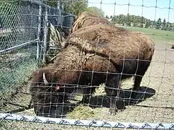 Preservation was the main focus of management up to World War II, which was accomplished by "feeding the bison, shooting carnivores that preyed on them, and patrolling for poachers."[34] As early as the 1870s, western ranchers James McKay and William Alloway were capturing bison calves and raising them alongside their herds of cattle, effectively domesticating the bison.[35] Some of these bison were sold in 1880 to Colonel Samuel Bedson, who let them roam the grounds of the Stony Mountain penitentiary in Manitoba.[36]