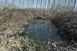 In 2018, excavations on the eastern bank of the ancient Natiso cum Turro river of Aquileia, in the area of Venetia et Histria that is now Friuli-Venezia Giulia, revealed the first system of basins from the Roman world that is known to have been used for the maceration of hemp, as inferred from archaeobotanical and archaeo-palynological studies of the site.[21] The long and shallow pools were dated between the late 2nd – 3rd A.D. and the late 3rd – early 4th century A.D.; they were delimited by parapets made of clay, sand, and tiny pebbles; and they were coated with thin layers of cocciopesto for waterproofing.[21] Similarly to more recent water retting procedures, the harvested stalks of cannabis sativa were bundled into sheaves and then submerged into either stagnant or running water by tying them to dedicated poles, to extract the fiber.[21] According to studies carried out in Venetia, hemp cultivation in the Upper Adriatic region was not intensive, rather it was either the result of self-sufficiency policies or, if it occurred on a larger scale, a complementary sector to the local wool industry, which was well developed in Aquileia at the time.[26][29] In addition, sulphurous waters from hot springs, such as those that can be found in the area around Aquileia, found usage in Antiquity in the maceration of both hemp and flax, which were then used in the production of cordage and fishing nets, in the manufacture of wool blend fabrics, as well as in the processing of both wool and wool products.[26][29]