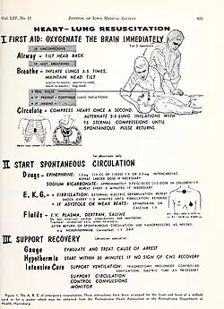 - ^ Ad Hoc Committee on Cardiopulmonary Resuscitation of the Division of Medical Sciences, National Academy of Sciences—National Research Council (1966). "Cardiopulmonary resuscitation". The Journal of the American Medical Association. 198 (4): 138–45, 372–79. doi:10.1001/jama.1966.03110170084023. PMID 5223538.
