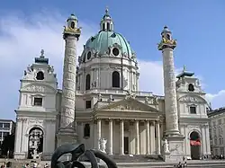 In the sixteenth and seventeenth centuries, many Renaissance and Baroque elliptical and oval plan domes were built over rectangular naves, using brick in Italy and stone in Spain. Later German oval domes in the Rococo style used different combinations of geometry. Elliptical dome traces were published by Durero (1525), Serlio (1545), and De L'Orme (1561) along with practical methods of achieving the shape using circular arcs, the technique used from the time of the ancient Romans.[11] The publication of Sebastiano Serlio's treatise, one of the most popular architectural treatises ever published, was responsible for the spread of the oval in late Renaissance and Baroque architecture. Book I (1545), on geometry, included techniques to create ovals, and Book V (1547), on architecture, included a design for an oval church.[12] Churches with oval plans begin to be built in the middle of the sixteenth century. Churches with oval domes allowed for a synthesis of the two fundamental church types, longitudinal and central plan, and would become characteristic of Baroque architecture and the Counter-Reformation.[13] Alonso de Vandelvira published a description of the geometry of oval domes around 1580 with orthogonal projections of meridian and parallel rib curves. Oval domes often incorporated both elliptical and oval or semicircular curves and this ambiguity is reflected in the architectural literature. Builders relied on graphical or empirical solutions to such geometric problems. In 1640, mathematician Paul Guldin established that the "elongated semicircle" of traditional practice is an ellipse.[14]