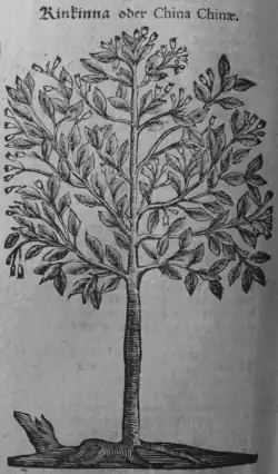 Spanish missionaries found that fever was treated by Amerindians near Loxa (Ecuador) with powder from Peruvian bark (later established to be from any of several trees of genus Cinchona).[47] It was used by the Quechua Indians of Ecuador to reduce the shaking effects caused by severe chills.[48] Jesuit Brother Agostino Salumbrino (1561–1642), who lived in Lima and was an apothecary by training, observed the Quechua using the bark of the cinchona tree for that purpose. While its effect in treating malaria (and hence malaria-induced shivering) was unrelated to its effect in controlling shivering from cold, it was nevertheless effective for malaria. The use of the "fever tree" bark was introduced into European medicine by Jesuit missionaries (Jesuit's bark).[49] Jesuit Bernabé de Cobo (1582–1657), who explored Mexico and Peru, is credited with taking cinchona bark to Europe. He brought the bark from Lima to Spain, and then to Rome and other parts of Italy, in 1632. Francesco Torti wrote in 1712 that only "intermittent fever" was amenable to the fever tree bark.[50] This work finally established the specific nature of cinchona bark and brought about its general use in medicine.[51]