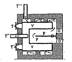 France's first gas company was also promoted by Frederick Winsor after he had to flee England in 1814 due to unpaid debts. He tried to found another gas company in Paris, but it failed in 1819. The government was also interested in promoting the industry, and in 1817 commissioned Chabrol de Volvic to study the technology and build a prototype plant, also in Paris. The plant provided gas for lighting the hôpital Saint Louis and the experiment was judged successful.[10] King Louis XVIII then decided to give further impulse to the development of the French industry by sending people to England to study the situation there, and to install gaslight at a number of prestigious buildings, such as the Paris Opera building, the national library, etc. A public company was created for this purpose in 1818.[11] Private companies soon followed, and by 1822, when the government moved to regulate the industry, four were operating in the capital. The regulations passed then prevented the companies from competing, and Paris was effectively divided between the various companies operating as monopolies in their own zones.[12]