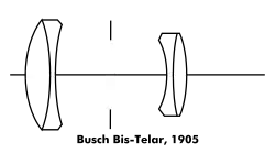 The front and rear cells of early telephotos were unmatched and the rear cell also magnified any aberrations, as well as the image, of the imaging cell. The cell spacing was also tunable, because that could be used to adjust the effective focal length, but that only worsened aberration problems. The first telephoto lens optically corrected and fixed as a system was the f/8 Busch Bis-Telar (Germany) of 1905.[1]: 135–137