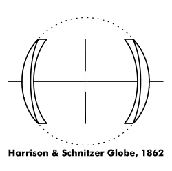 The first successful wide-angle lens was the Harrison & Schnitzer Globe (USA) of 1862,[12] although with a f/16 maximum aperture (f/30 was more realistic). The lens had a 92° maximum field of view, although 80° was more realistic. Charles Harrison and Joseph Schnitzer's Globe had a symmetric four-element formula; the name refers to the consideration that if the two outer surfaces were continued and then joined, they would form a sphere.[1]: 52–53 [2]: 160