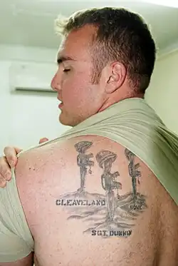 - ^ a b c d e f g Dyvik, Synne L; Welland, Julia (7 December 2018). "War Ink: Sense-Making and Curating War through Military Tattoos". International Political Sociology. 12 (4): 346–361. doi:10.1093/ips/oly018.