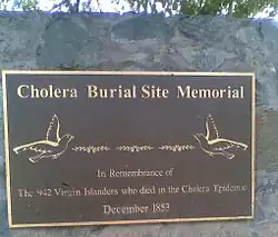 In December 1853 there was a disastrous outbreak of cholera in the Territory, which killed nearly 15% of the population.[26] This was followed by an outbreak of smallpox in Tortola and Jost Van Dyke in 1861 which caused a further 33 deaths.