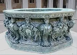In 1332 a new building site targeted the palace wells: the most important one, located in the center of the courtyard, was repaired, and a smaller one was built in a small courtyard bordering the basilica.[56] A third well was added in 1405.