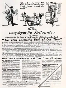 The sale of the Britannica to Americans has left a lingering resentment among some British citizens, especially when it is perceived that parochial American concerns are emphasized.[26] For example, one British critic wrote on the centenary of the sale:[30]