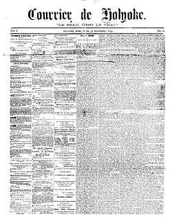 - ^ "Courrier d'Holyoke, parait le Jeudi de chaque semaine". Courrier de Holyoke. Vol. I, no. 11. December 17, 1874.