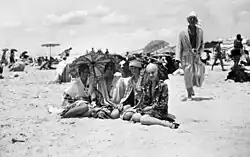 Ladies posing for a photo at Main Beach, ca. 1934