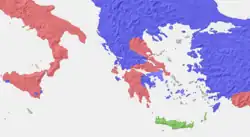 In the 8th to 6th centuries, local or epichoric variants of the alphabet developed. They are classified into three main groups, following Adolf Kirchhoff (1887): green (Cretan), red (Euboean or Western) and blue (Ionic, Attic and Corinthian). The main distinction is in the supplemental signs added to the Phoenician core inventory.