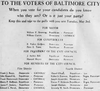 In 1904, Isidor Rayner was elected the first Jewish US Senator from Maryland, one of the first Jewish US Senators in American history.[17]