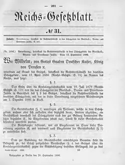 In April 1886, the Reichstag passed a law to create a legal foundation for colonial protectorates, giving the kaiser and his appointed governor the authority to make laws by ordinance which did not necessarily have to follow the imperial constitution.[96] In September 1886, an imperial ordinance established the Protectorate of the Marshall Islands, and declared that German consular law would apply to all residents of the Marshall Islands, including indigenous Marshallese. The ordinance also gave the German chancellor the discretionary authority to apply extraconstitutional ordinances to the Marshallese.[105]