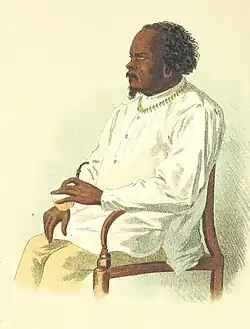 Russian explorer Otto von Kotzebue spent three months exploring the Ratak Chain in early 1817, and returned to explore the islands on two occasions in 1824 and 1825.[45][46] According to Kotzebue's account, the Marshallese people showed few signs of western influence on his first visit in 1817. He gifted the islanders metal knives and hatchets and set up a temporary forge to craft fishhooks and harpoons. He also introduced new crops, including yams, as well as livestock, including pigs, goats, dogs, and cats. Kotzebue also noted that in 1817, Lamari, the iroij of Aur Atoll, had successfully conquered the other atolls of northern Ratak Chain and was preparing to go to war with Majuro Atoll.[16] On his return trips in the 1820s, Kotzebue found that the Marshallese were still tending to crops that he had given them, but that the livestock and metal tools were concentrated among the island chieftains. He also found that the metal hatchets had played a decisive role in Lamari's victory over the people of Majuro; by the time of Kotzebue's second visit, Lamari was planning to further expand his power and begin making incursions into the Ralik Chain.[47]