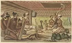When Russian explorer Otto von Kotzebue visited the Marshalls in 1817, the islanders still showed few signs of western influence, aside from a few scraps of metal and stories of passing ships. He observed that the Marshallese lived in thatched-roof huts, but their villages did not include the large-ornate meetinghouses found in other parts of Micronesia. They did not have furniture, except for woven mats, which they used for both floor coverings and clothing. The Marshallese had pierced ears and tattoos. Kotzebue noted that the Marshallese tried to keep women away from foreigners, similar to other Micronesians and unlike Polynesians. On the islands he visited, Kotzebue learned that Marshallese families practiced infanticide after the birth of a third child as a form of population planning due to frequent famines. He also noted that Marshallese iroij (chieftains) held considerable authority and rights to all property, though he had a more favorable view of the condition of Marshallese commoners than of Polynesian commoners.[16] The Marshalls' two island groups, the Ratak and Ralik chains were each ruled by a paramount chief, or iroijlaplap, who held authority over the individual island iroij.[17]