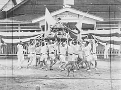 The government also sponsored youth associations (青年団, seinendan) devoted to Japanese activities, such as track and field, baseball, handicrafts, and song competitions.[160] Beginning in 1915, elite Marshall Islanders received free trips to Japan to expose them to Japanese culture.[163][164] Students also received tours of Japan from 1917.[165] Islanders were responsible for some of the costs of the trips from 1926, and the tour program continued until 1939.[166]