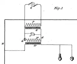 - ^ a b Tesla, Nikola (March 29, 1899). "Some experiments in Tesla's laboratory with currents of high frequencies and pressures". Electrical Review. 34 (13): 193–197. Retrieved November 30, 2015. p. 196-197 and fig. 2: Tesla describes the steps in his invention of the high frequency transformer.