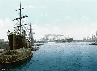 During the first half of the 19th century, most European emigrants to the New World embarked from Hamburg, Germany, and New York City was their most common destination. Restaurants in New York offered Hamburg-style American fillet,[23][24] or even beefsteak à la Hambourgeoise. Early American preparations of minced beef were therefore made to fit the tastes of European immigrants, evoking memories of the port of Hamburg and the world they left behind.[25]