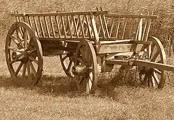 Excavations of Iron Age sites have recovered horse bones from ritual pits at a temple site near Cambridge,[23] and around twenty Iron Age chariot burials have been found, including one of a woman discovered at Wetwang Slack.[24] The majority of Iron Age chariot burials in Britain are associated with the Arras culture, and in most cases the chariots were dismantled before burial. Exceptions are the Ferrybridge and Newbridge chariots, which are the only ones found to have been buried intact. The Newbridge burial has been radiocarbon dated to 520–370 BC, and the Ferrybridge burial is likely to be of similar date.[25]